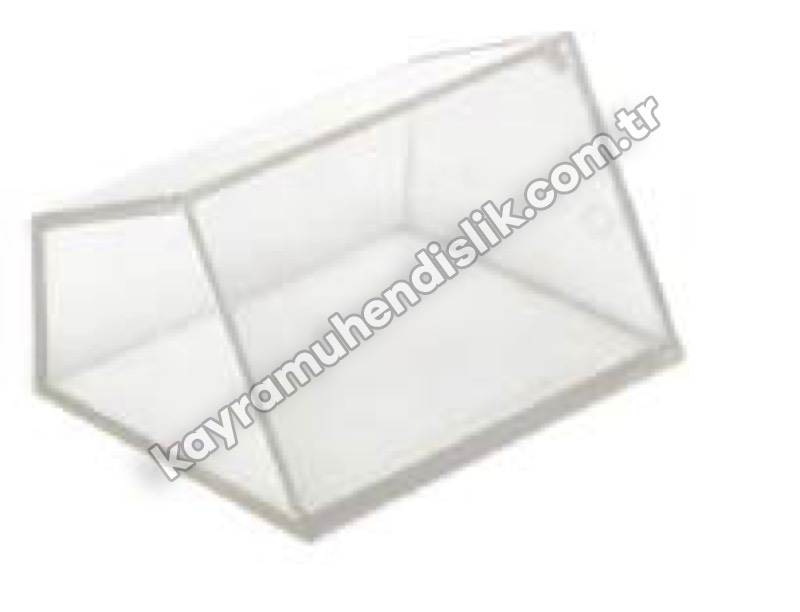 Tabanın içten içe kenar uzunlukları 38x47x65x75 mm, cisim yüksekliği ise 105 mm'dir. Saydam plastikten yapılmıştır.