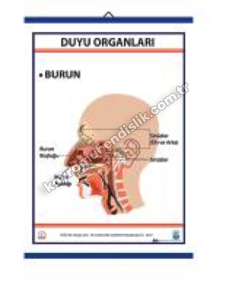 Solunum yollarının ilk organı olan burunun ve sinüslerin yapısı ayrıntılı olarak incelenebilir. Levha 70x50 cm ebatlarındadır. Plastik çıtalı ve selefon kaplamalıdır.