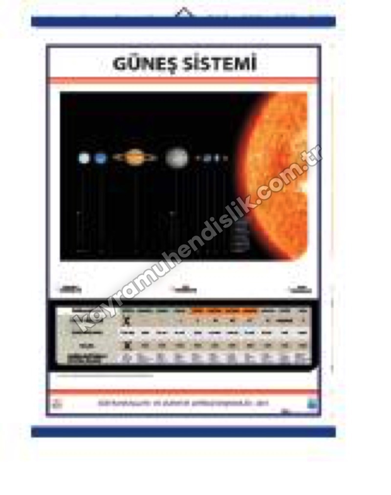 70X100 cm ebatlarındadır. plastik çıtalı ve selefon kaplamalıdır. Gezegenlerin adları, karşılaştırmalı büyüklükleri, güneşe yakınlıklarına göre sıralı olarak gösterilmiştir. güneş sisteminin ayrıntılı olarak incelenmesinde kullanılır.